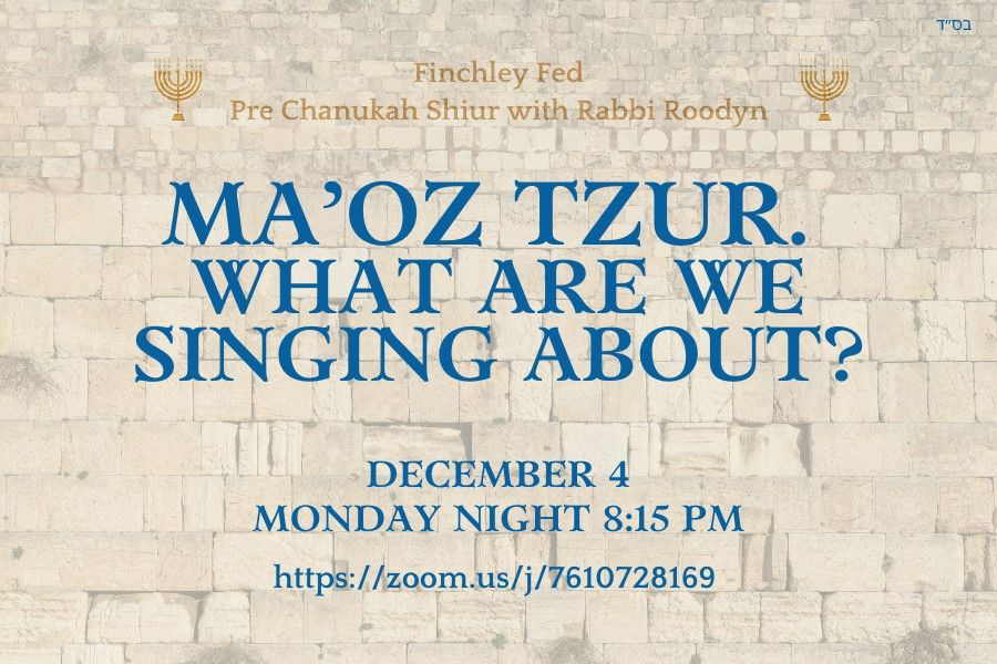 Pre Chanukah Shiur – Ma’oz Tzur. What are we singing about? Posted on November 30, 2023 by Rabbi Roodyn This Monday evening at 20:15 PM on zoom. Discover more from Rabbi Roodyn Subscribe to get the latest posts sent to your email. Type your email… Subscribe Rate this:Share this: Click to share on Nextdoor (Opens in new window) Nextdoor Click to share on Threads (Opens in new window) Threads Click to share on Mastodon (Opens in new window) Mastodon Click to share on Telegram (Opens in new window) Telegram Share on TumblrPocketTweet Click to share on Bluesky (Opens in new window) Bluesky Click to print (Opens in new window) Print Post Click to share on WhatsApp (Opens in new window) WhatsApp Click to share on Reddit (Opens in new window) Reddit Click to email a link to a friend (Opens in new window) Email Like Loading... Related